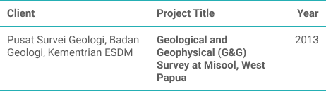Our oil & gas division provides services and products covering geological & surface geophysical (non-seismic) field survey, aerial survey, subsurface data analysis & interpretation, and surface geochemical exploration program for both onshore and offshore.Our consultants have proven track records and experiences of related services those bring added value, risk reduction and valuable insight to both exploration and development of oil & gas project, assisting our clients to meet their objectives.